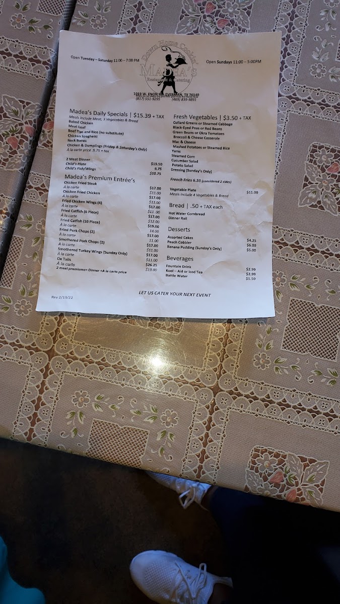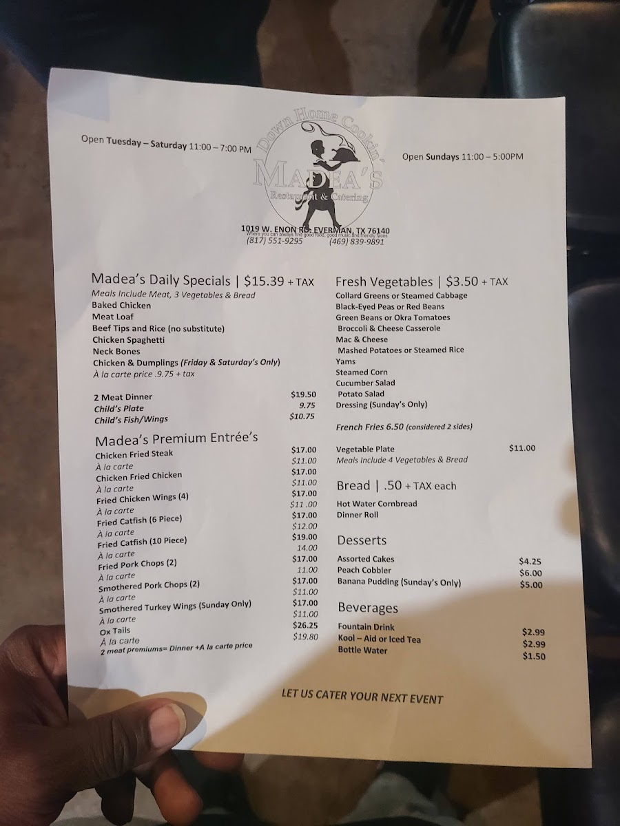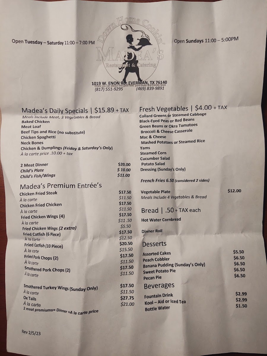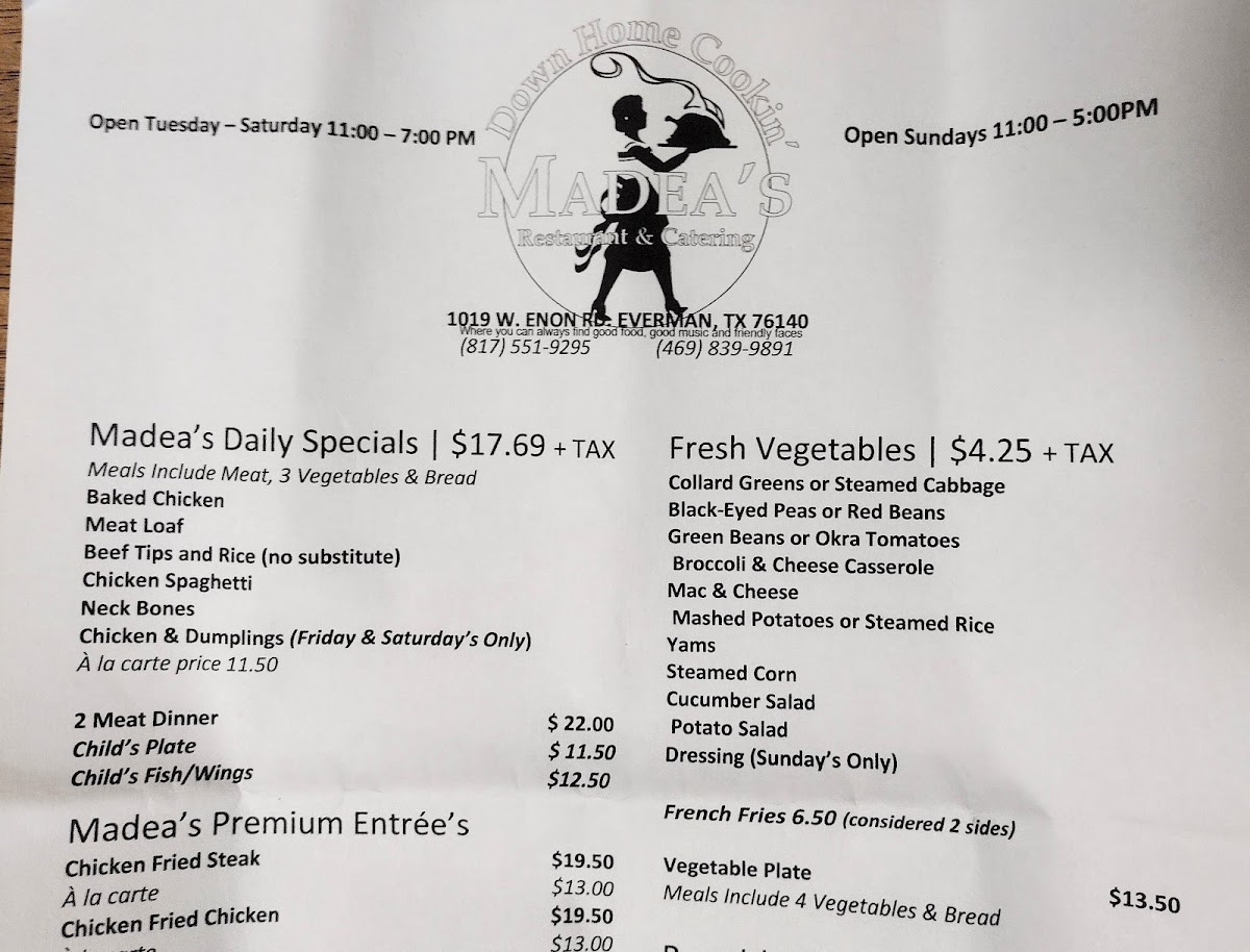 Madea's Down Home Cooking Menu