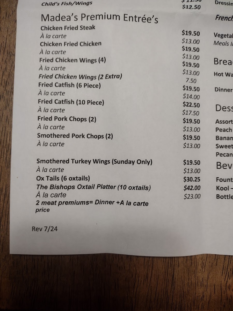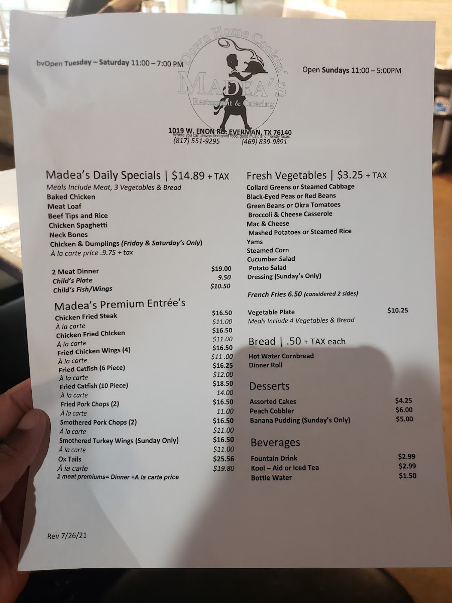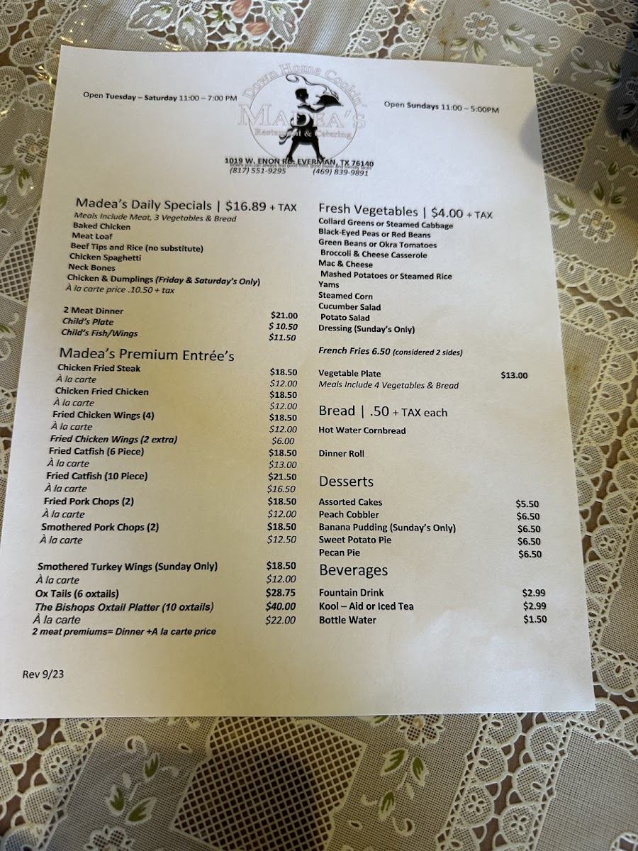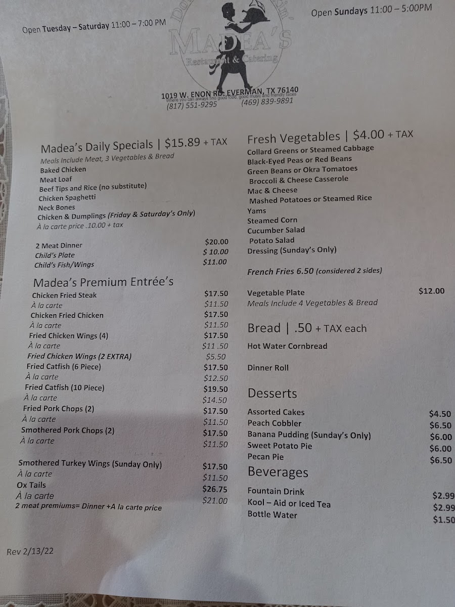 Madea's Down Home Cooking Menu